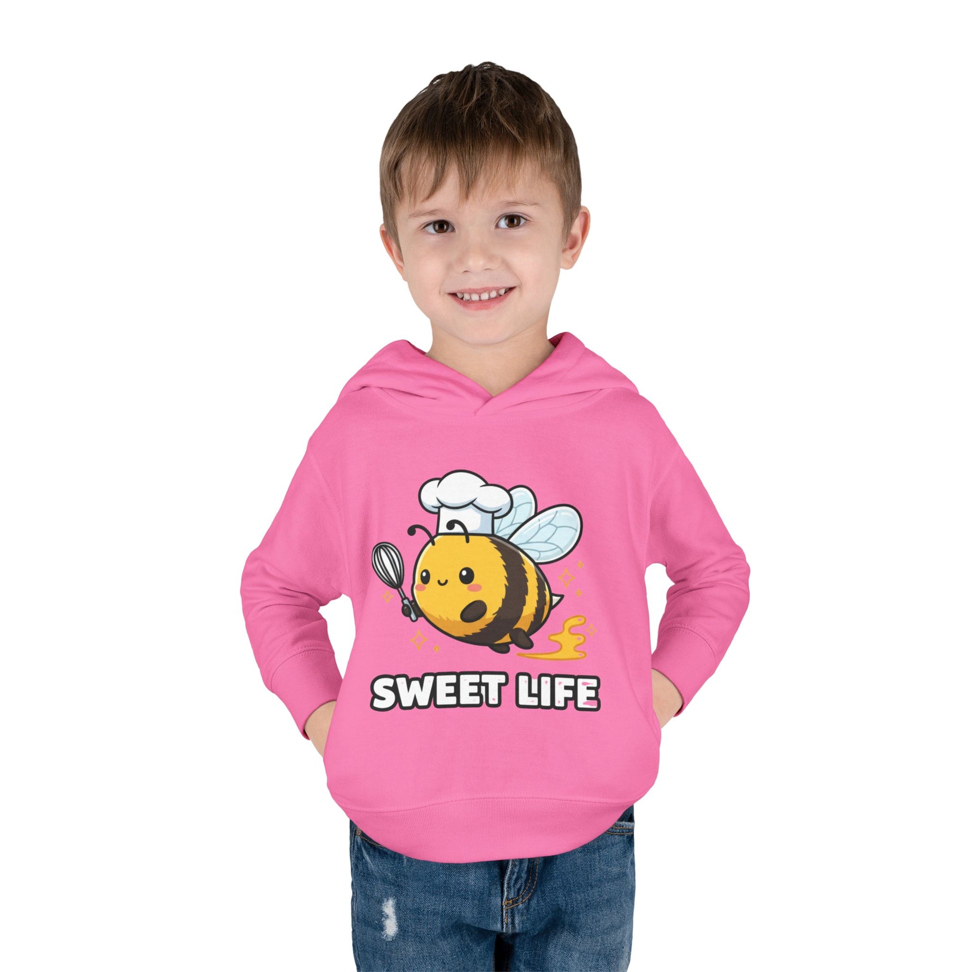 Wrap your little one in comfort and joy with this adorable Toddler Pullover Fleece Hoodie. Featuring a charming bee design, this hoodie radiates warmth and encourages a sweet life for your child. The soft fabric feels gentle against the skin, making it perfect for cozy playdates or family outings. Ideal for all seasons, it seamlessly fits into your toddler's wardrobe, providing both style and functionality. Great for birthdays, family gatherings, or everyday wear, this hoodie is a wonderful gift for young explorers and little dreamers who love to dress with personality. Product features - Soft and cozy fabric blend for all-day comfort - Ribbed-knit cuffs and waistband for a snug fit - Convenient side-seam pockets for tiny treasures - Durable construction with coverstitched seams - Jersey-lined hood for added warmth and style Care instructions - Machine wash: cold (max 30C or 90F) - Non-chlorine: bleach as needed - Tumble dry: low heat - Iron, steam or dry: low heat - Do not dry clean