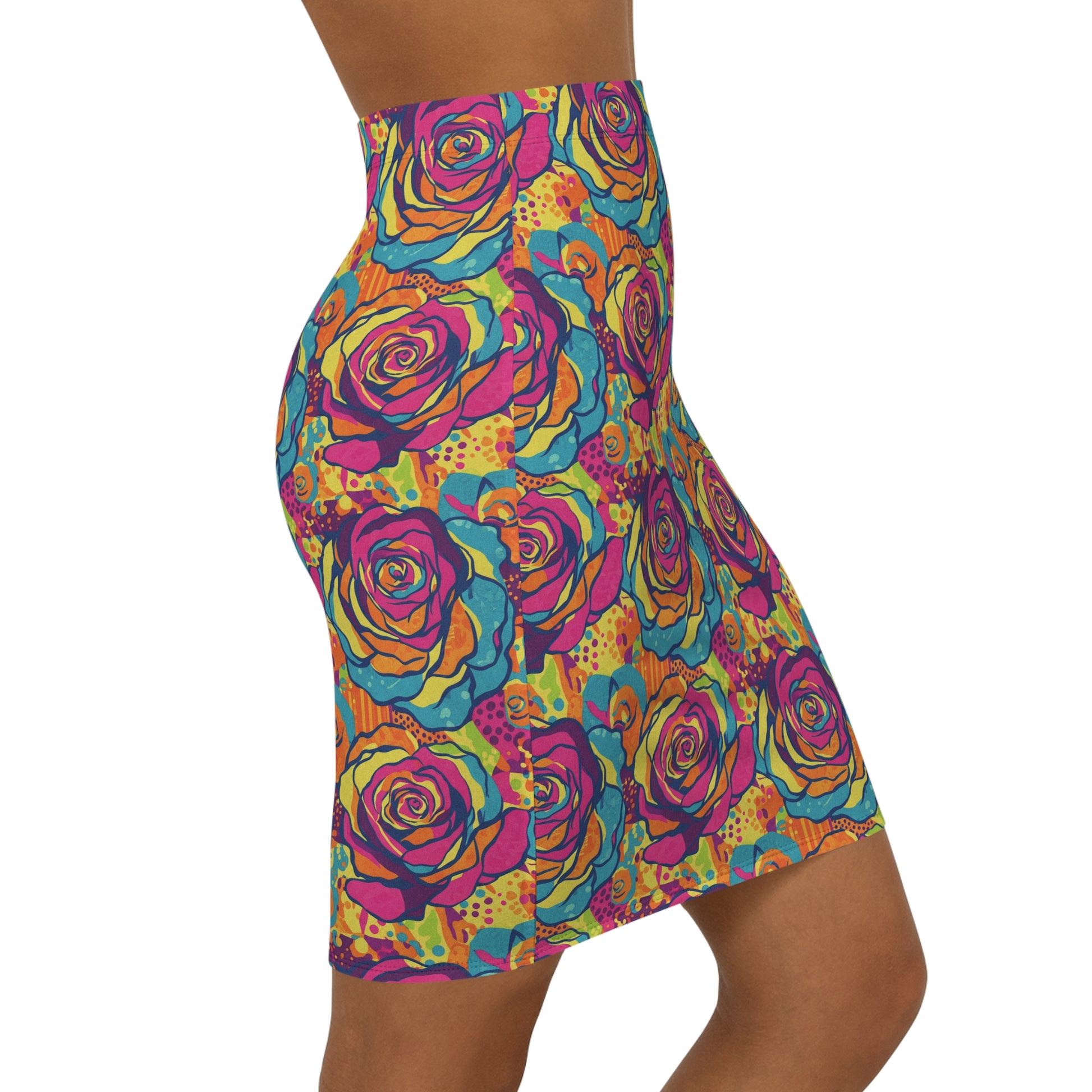 Vibrant Floral Pencil Skirt, Colorful Mid-Waist Skirt, Trendy Party Outfit, Women's Fashion, Summer Dress Code, Unique Gift Idea